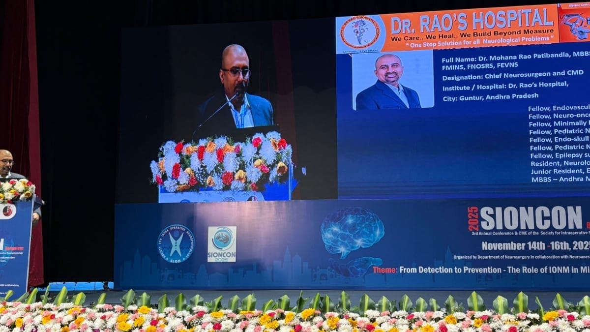 Bengaluru (Karnataka) [India], November 18: In what experts are calling one of the most substantial contributions to neurosurgical safety research in recent years, Dr Mohana Rao Patibandla—Chief Neurosurgeon and CMD of Dr Rao’s Hospital, Guntur—presented a landmark analysis of 1008 neurosurgical cases at SIONCON 2025, held at the NIMHANS Convention Centre in Bengaluru.