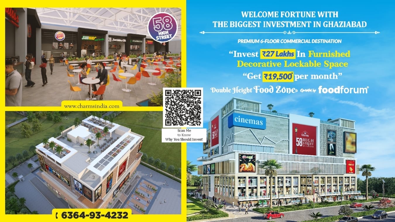 New Delhi [India], August 20: If you’re searching for a premium commercial property investment in Raj Nagar Extension, Ghaziabad, your search ends with Charms India’s 58 High Street– a project that’s redefining the retail and dining experience in the city.